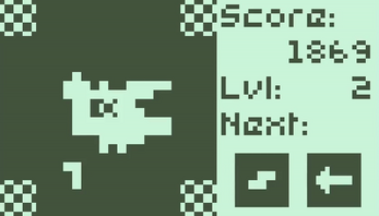 Tetris with a twist! Centriminos fall towards a center square. Complete layers to win points! Nokia 3310 Jam 5 submission.